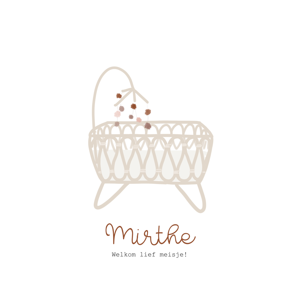 Dit lieve geboortekaartje voor een meisje met retro rotan wiegje pas je aan naar wens en smaak. Mara