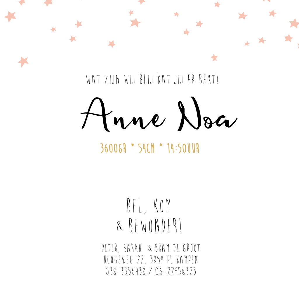 Pas de geboortekaartjes helemaal aan naar wens. Zowel het lettertype als de kleuren zijn aan te passen. De attributen zijn te vergroten, verkleinen en verplaatsen.