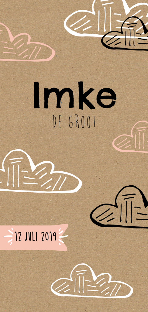 Lief maar ook stoer geboortekaartje met doodle wolkjes en Kraft achtergrond. Helemaal aan te passen naar wens en smaak.