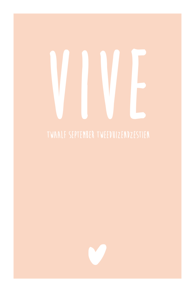 rustig geboortekaartje in zalmkleur en hartje voor een meisje