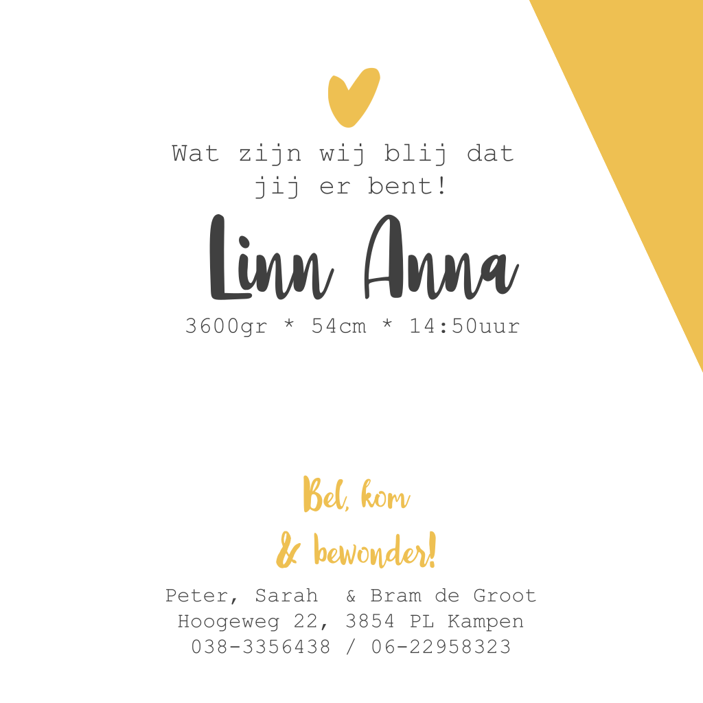 Lief en rustig cheometrisch geboortekaartje met okergele details