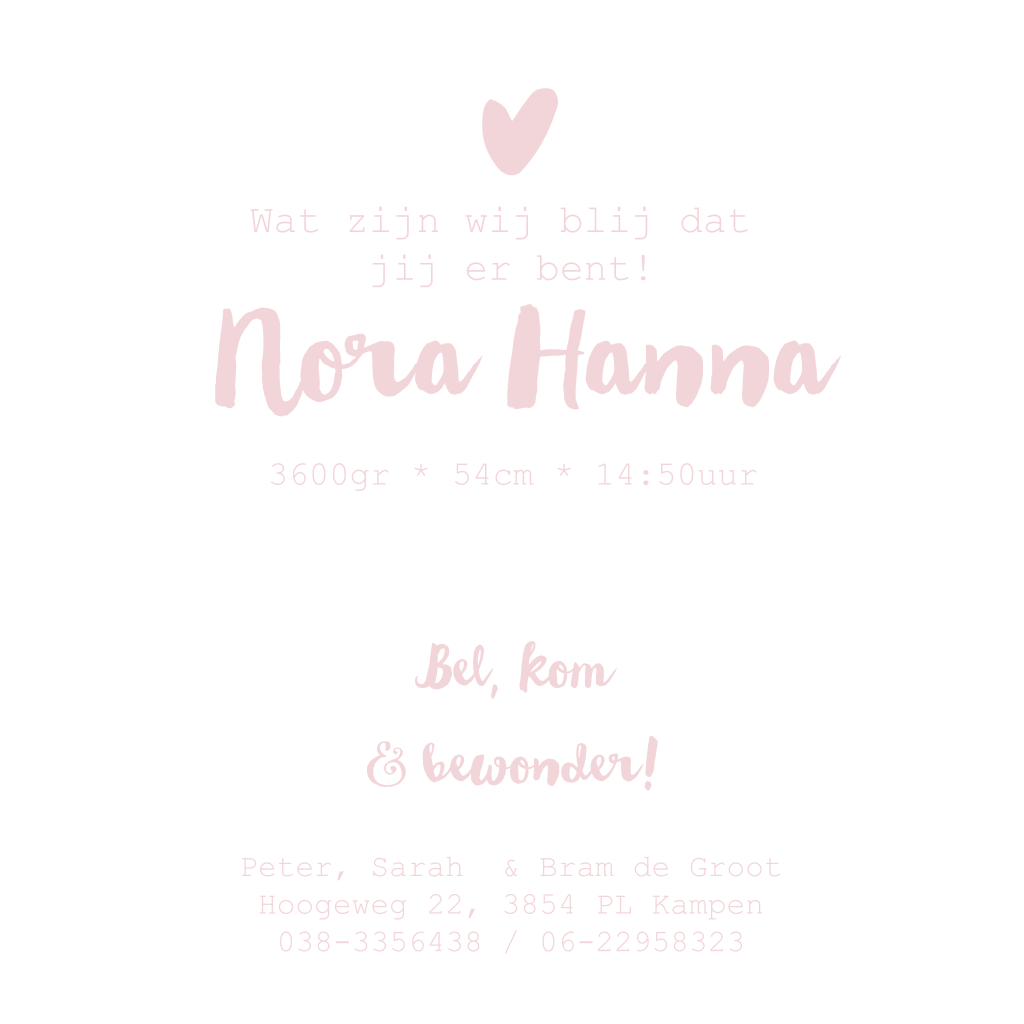 Pas dit kaartje helemaal aan naar wens. Zowel het lettertype als de kleuren zijn aan te passen. De attributen zijn te vergroten, verkleinen en verplaatsen.