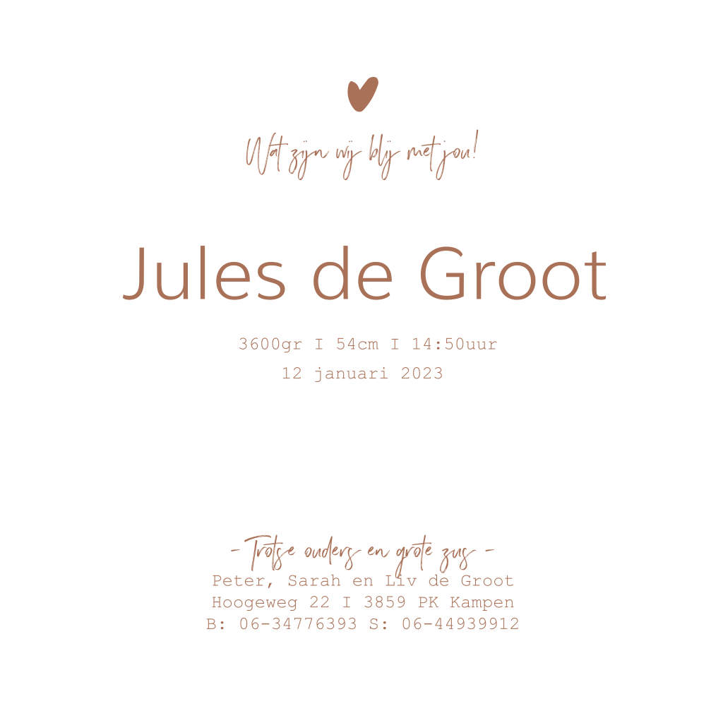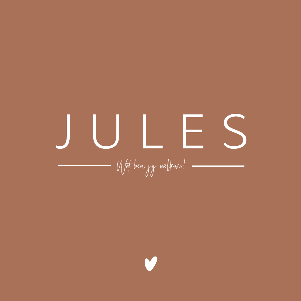Minimalistisch geboortekaartje unisex met roestbruine achtergrond