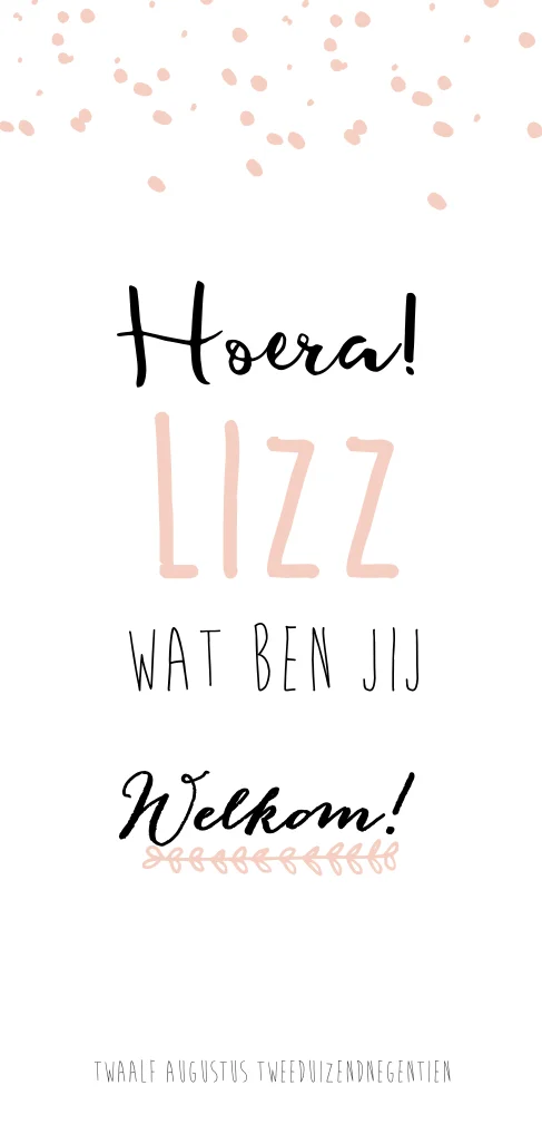 Pas dit kaartje helemaal aan naar wens. Zowel de lettertypes, tekst, maar ook de kleuren. De attributen zijn ook te verplaatsen.