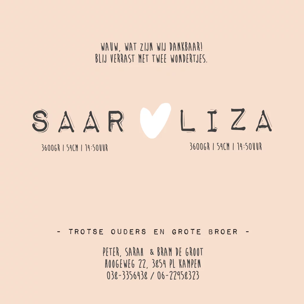 Geboortekaartje voor een tweeling