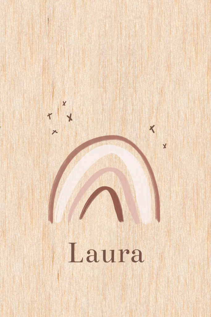 Houten baby-rouwkaartje meisje met regenboog roze