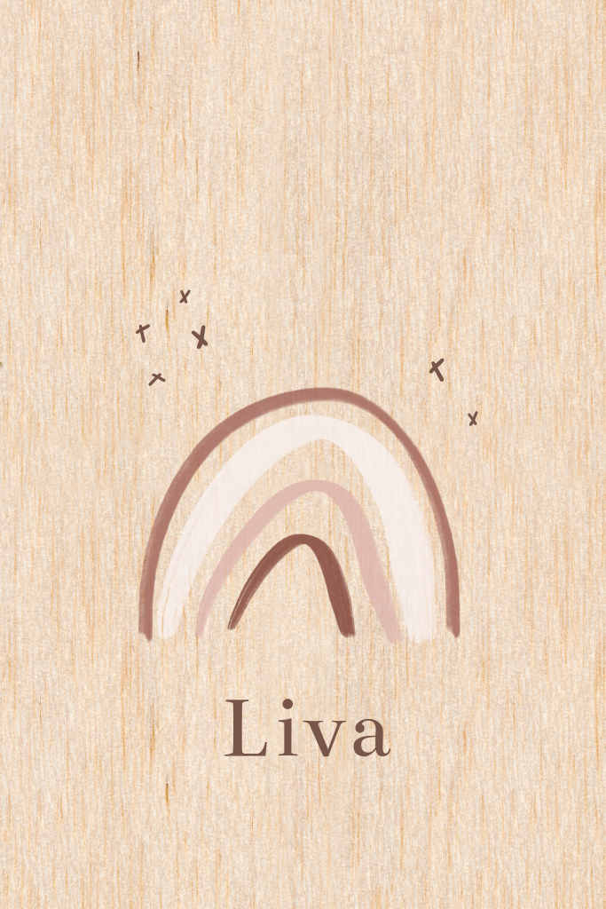 Dit geboortekaartje voor een meisje op berkenhout en regenboog kun je zelf aanpassen naar wens. Liva