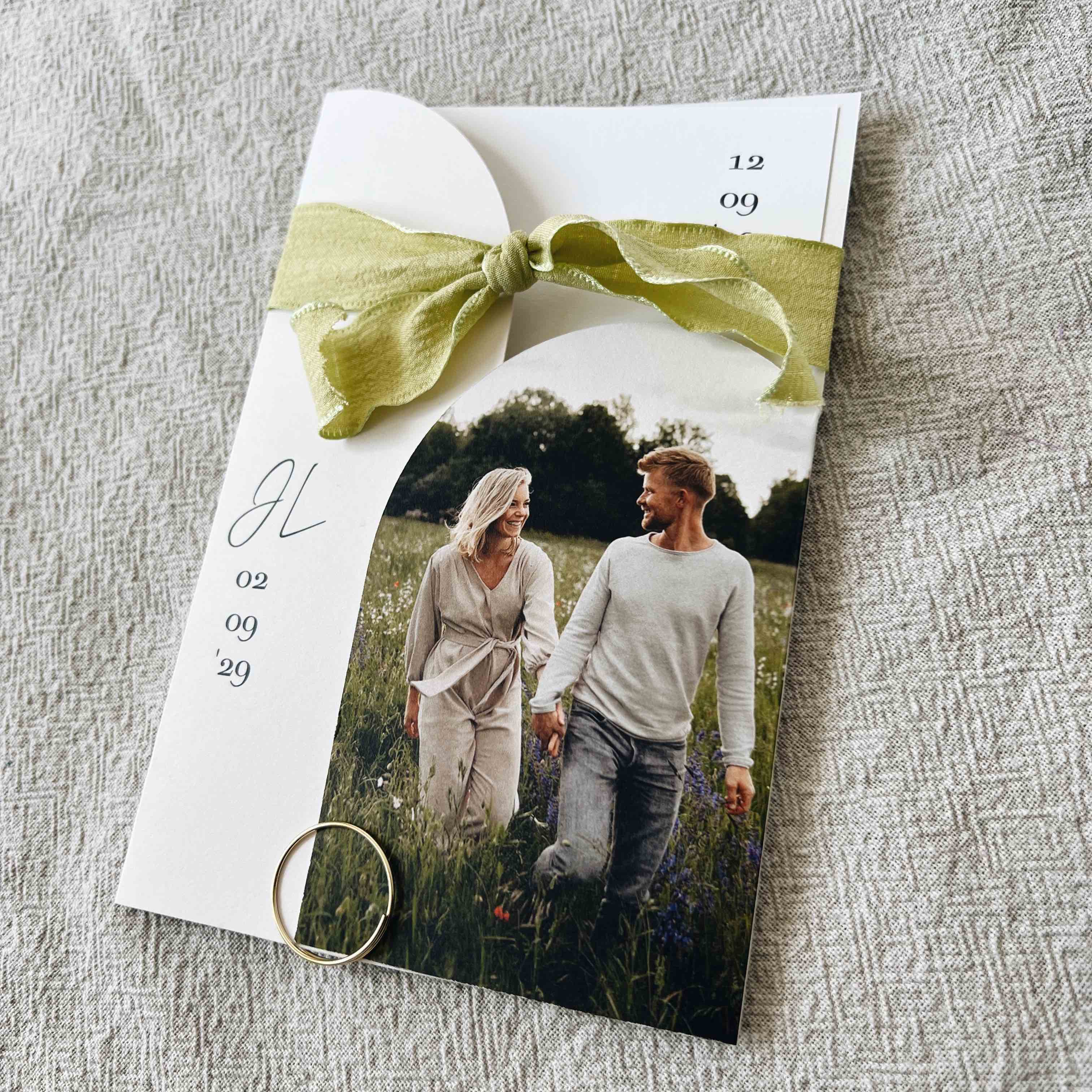 Trouwkaart insteekhoes beige met foto pocketfold