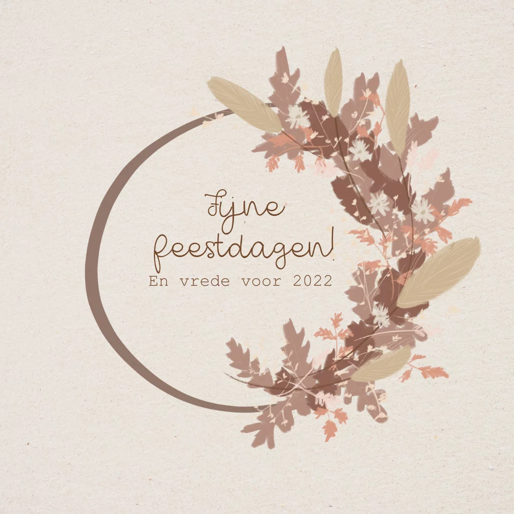 Deze kerstkaart met droogbloemen krans en kraftlook achtergrond kun je zelf aanpassen naar wens.