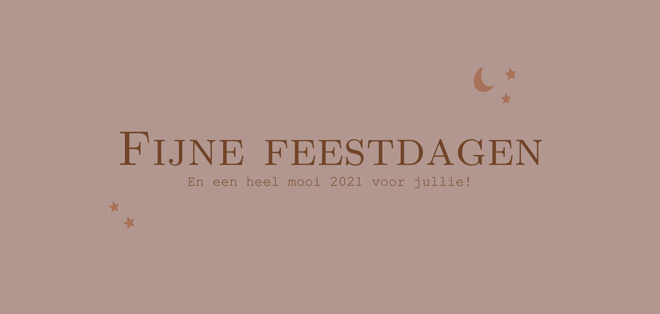Deze kerstkaart met roze bruine achtergrond en sterren en maan kun je aanpassen naar wens. Zo maak je een unieke kerstkaart om te versturen.