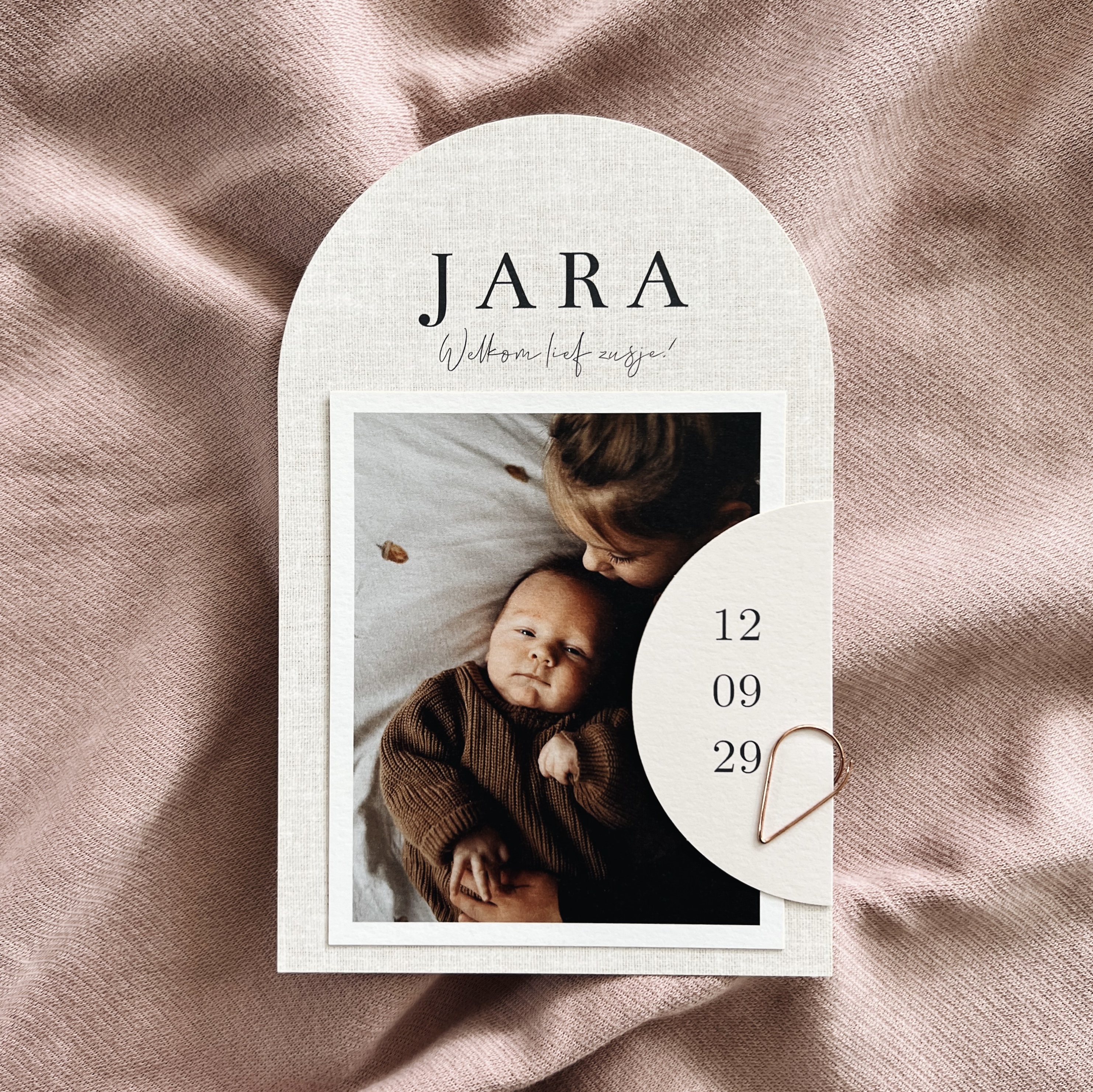 Geboortekaartje meisje jongen losse kaarten labels met foto linnen