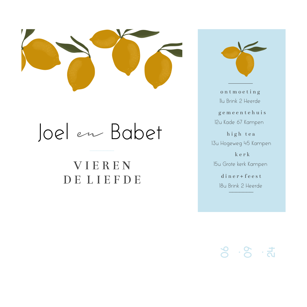De lichtblauw babyblauwe achtergrond maar ook de citroentjes kun je verplaatsen en vermeerderen zoals jullie willen.
