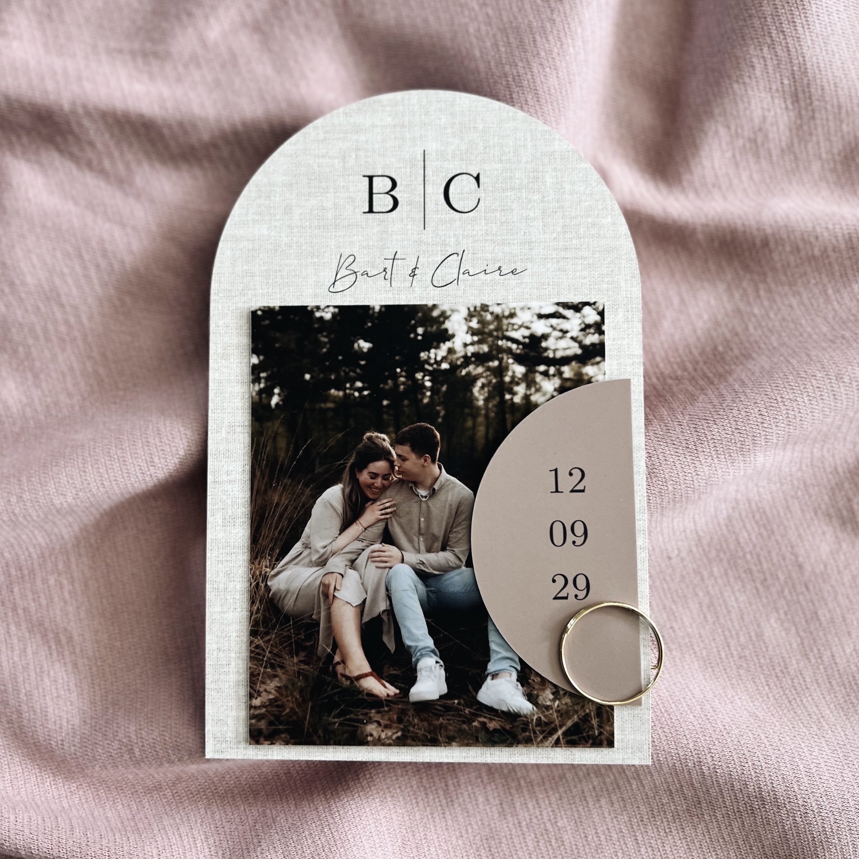 Deze trouwkaart is een stapelset met 4 losse kaarten. Deze kun je heel mooi samenvoegen met een paperclip.