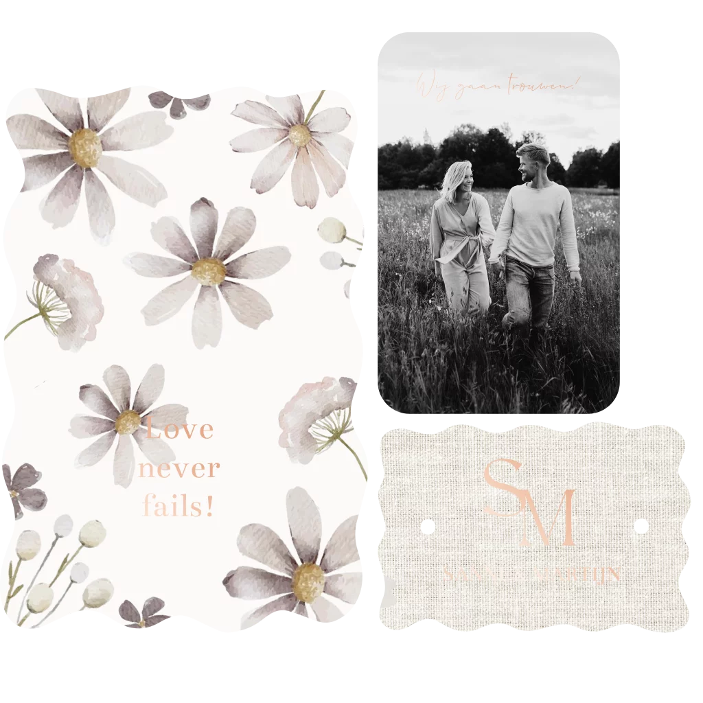 De kleuren, ook de roséfolie kun je allemaal aanpassen naar wens. Kom je er niet uit? Mail dan even, we helpen graag!