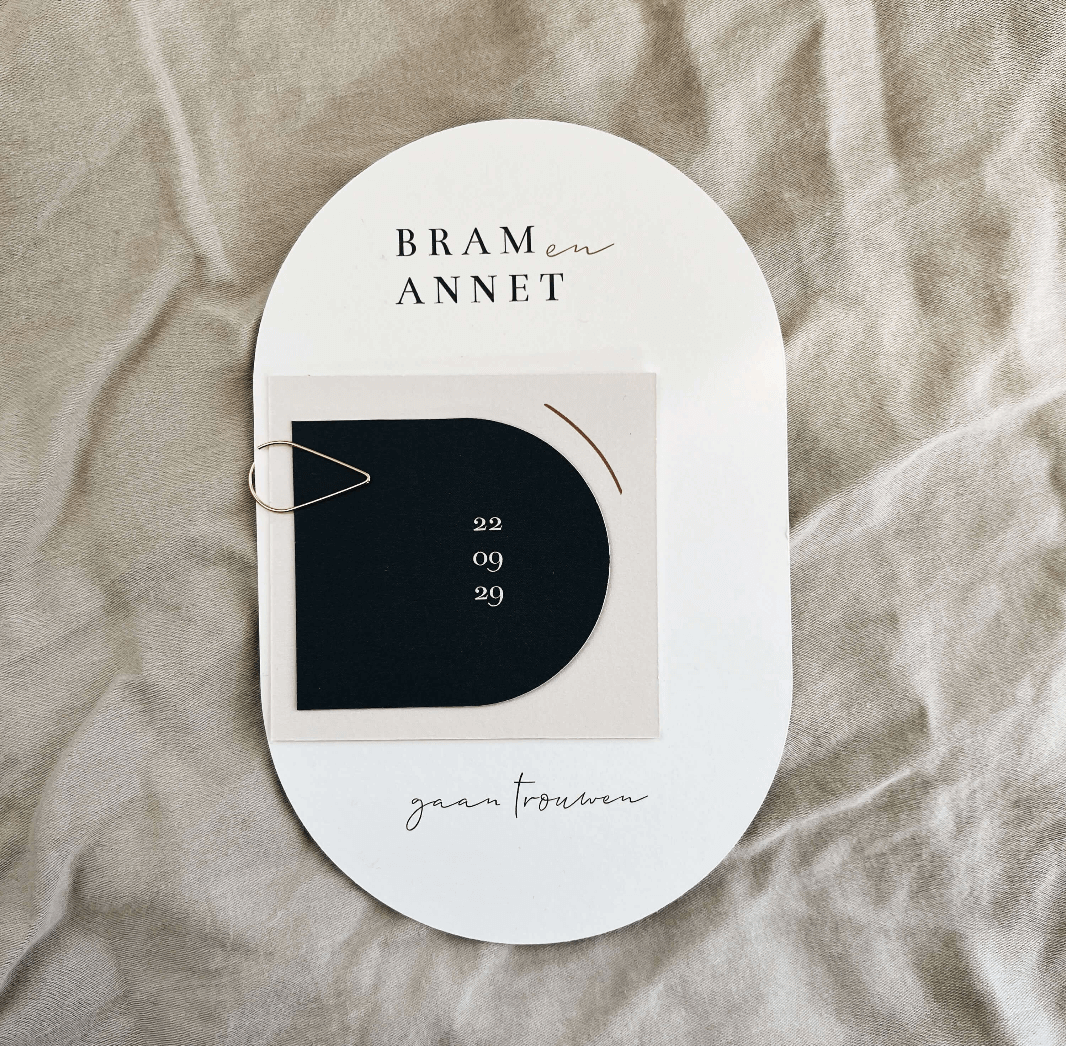 Een mooie minimalistische trouwkaart met 3 verschillende kaartjes die je kunt stapelen en kunt bevestigen met een paperclipje.
