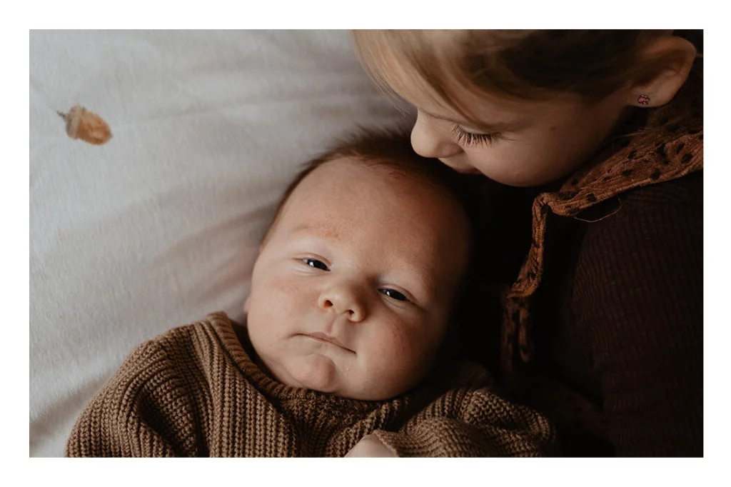 Foto label voor geboortekaartje met broertje zusje 50x77 mm