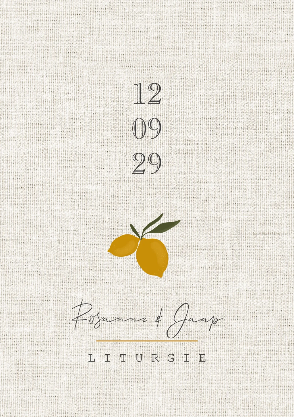 Deze liturgie met Linnen look voorkant met citroentjes kun je zelf helemaal aanpassen naar wens en smaak.
