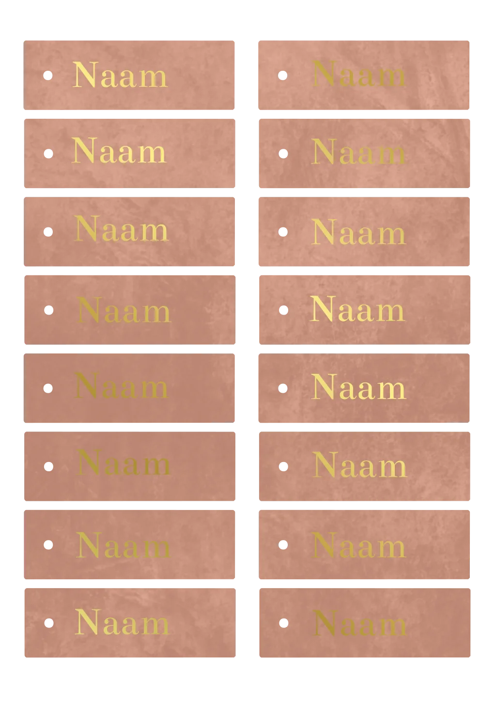 Deze stijlvolle labeltjes geven jullie bruiloftstafel een luxe en romantische uitstraling. Dankzij de gaatjes kun je ze eenvoudig bevestigen met een mooi lintje.