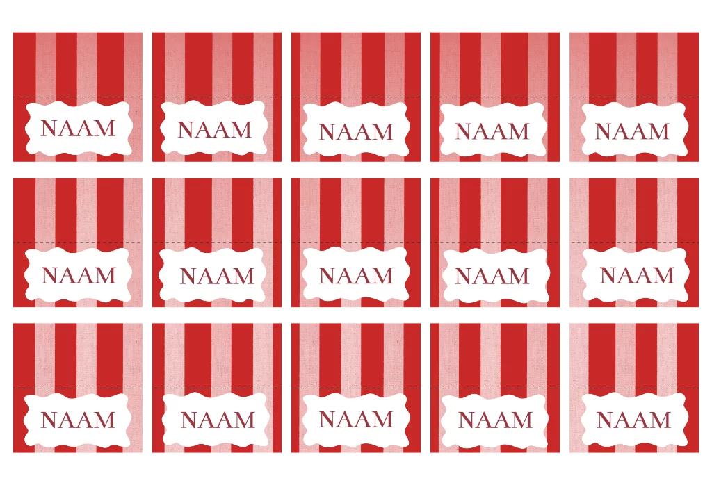 Naamkaartjes voor de tafelsetting met de bruiloft rode strepen