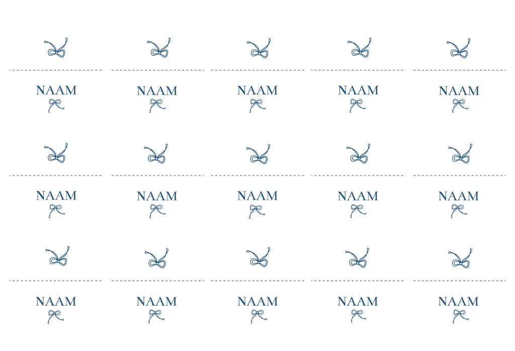 Naamkaartjes voor een unieke tafelsetting, met simpele blauwe strikjes