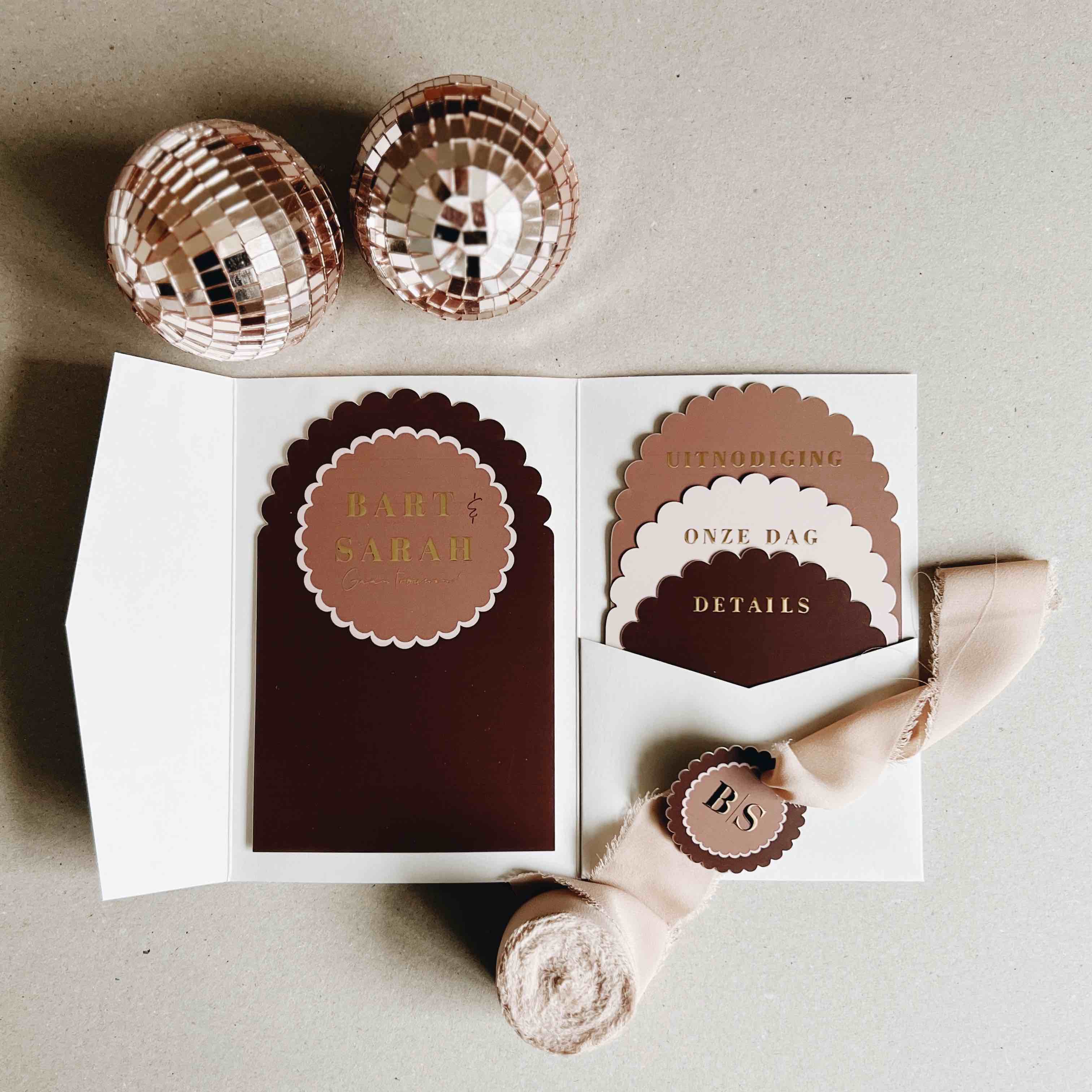 Deze mooie originele pocketfoldset is een prachtige trouwkaartenset voor jullie bruiloft.
