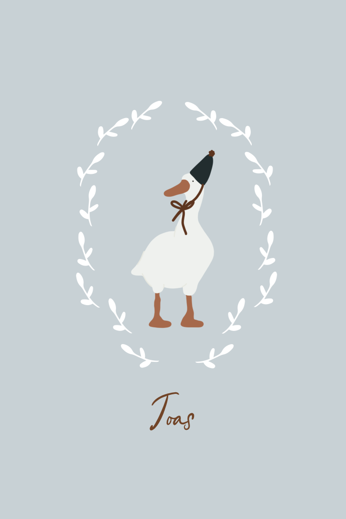 Deze lieve poster met gans en feestmuts past perfect op de babykamer van jullie zoontje.