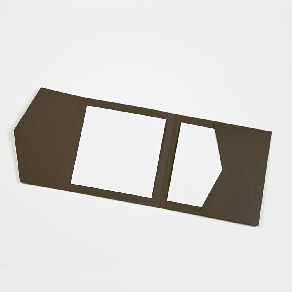 Chocolate Brown pocketfold voor vierkante kaarten van 13x13 cm. Formaat pocketfold: 14,5x14,5 cm. Kies voor envelopformaat 16x16 cm.