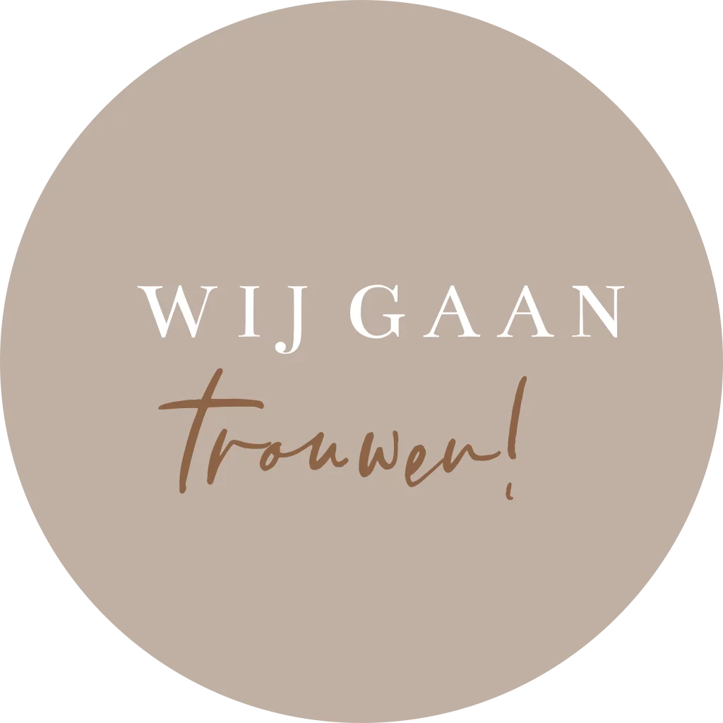 Sluitsticker trouwkaart beige roze bruin tekst wij gaan trouwen