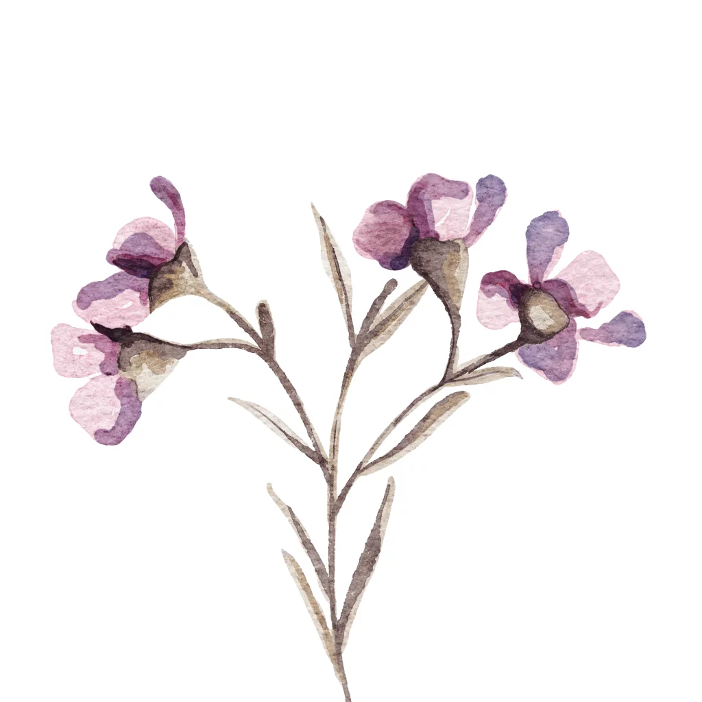Een ronde sluitsticker met geschilderde paarse bloem geschikt om een enveloppe mee te sluiten met jullie trouwkaarten of geboortekaartjes.