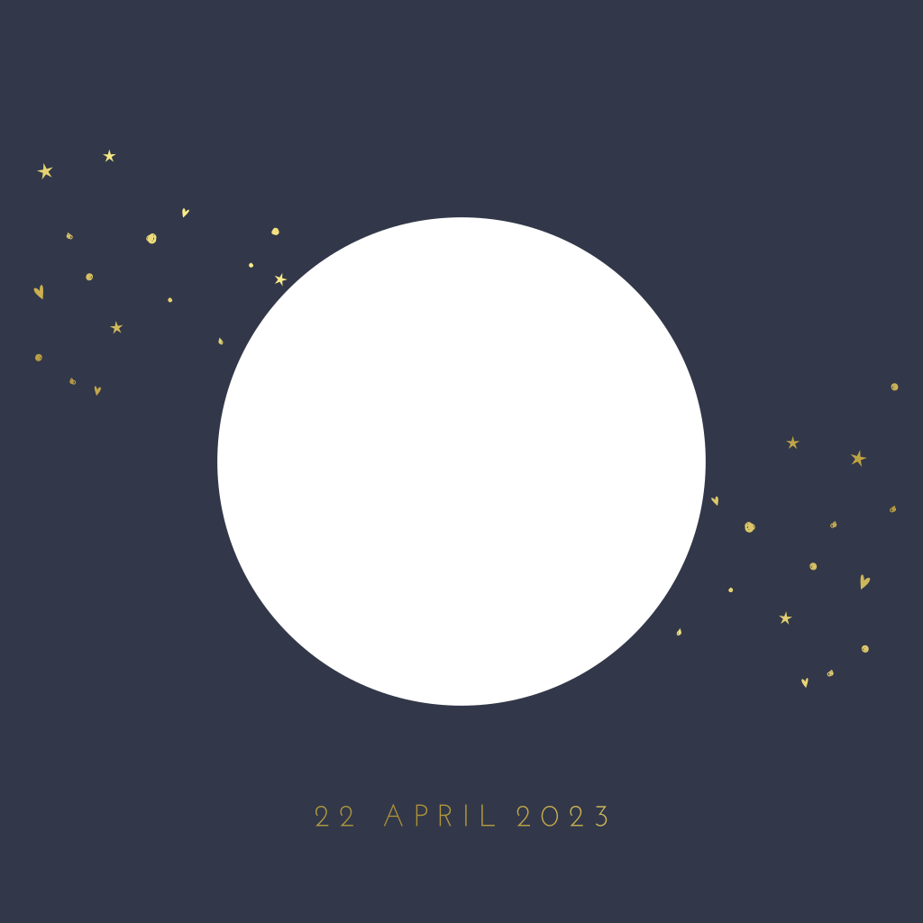Zie erin wat je wil zien, maar speciaal is het zeker... Aan de voorzijde is de cirkel uitgesneden waardoor je een doorkijk krijgt naar binnen. De aquarel achtergrond in combinatie met de goudfolie sterren lijkt daarmee op een planeet in de ruimte of is het misschien een doorkijk naar een andere wereld?
