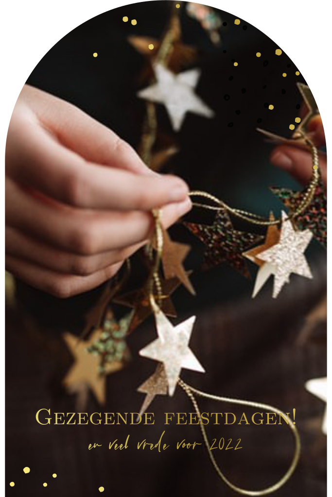 Deze kerstkaart met gezegende feestdagen en veel vrede voor 2022 in folie kun je zelf aanpassen naar wens. De kerkraam vorm met mooie foto van Hanna Wursten kun je zelf aanpassen naar wens. Ook kun je de foliedruk uitzetten om de kosten te drukken.