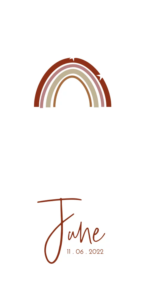 Geboorte rouwkaart regenboog en uitgesneden sterretjes in rood