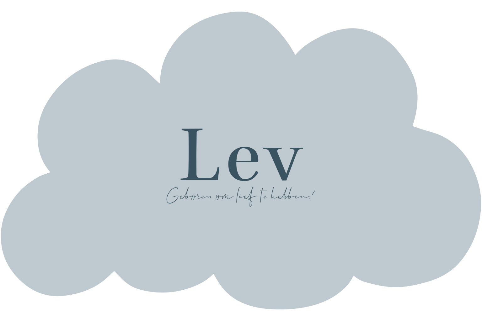 Lief geboortekaartje voor een jongen in de vorm van een wolkje in blauwe kleuren.