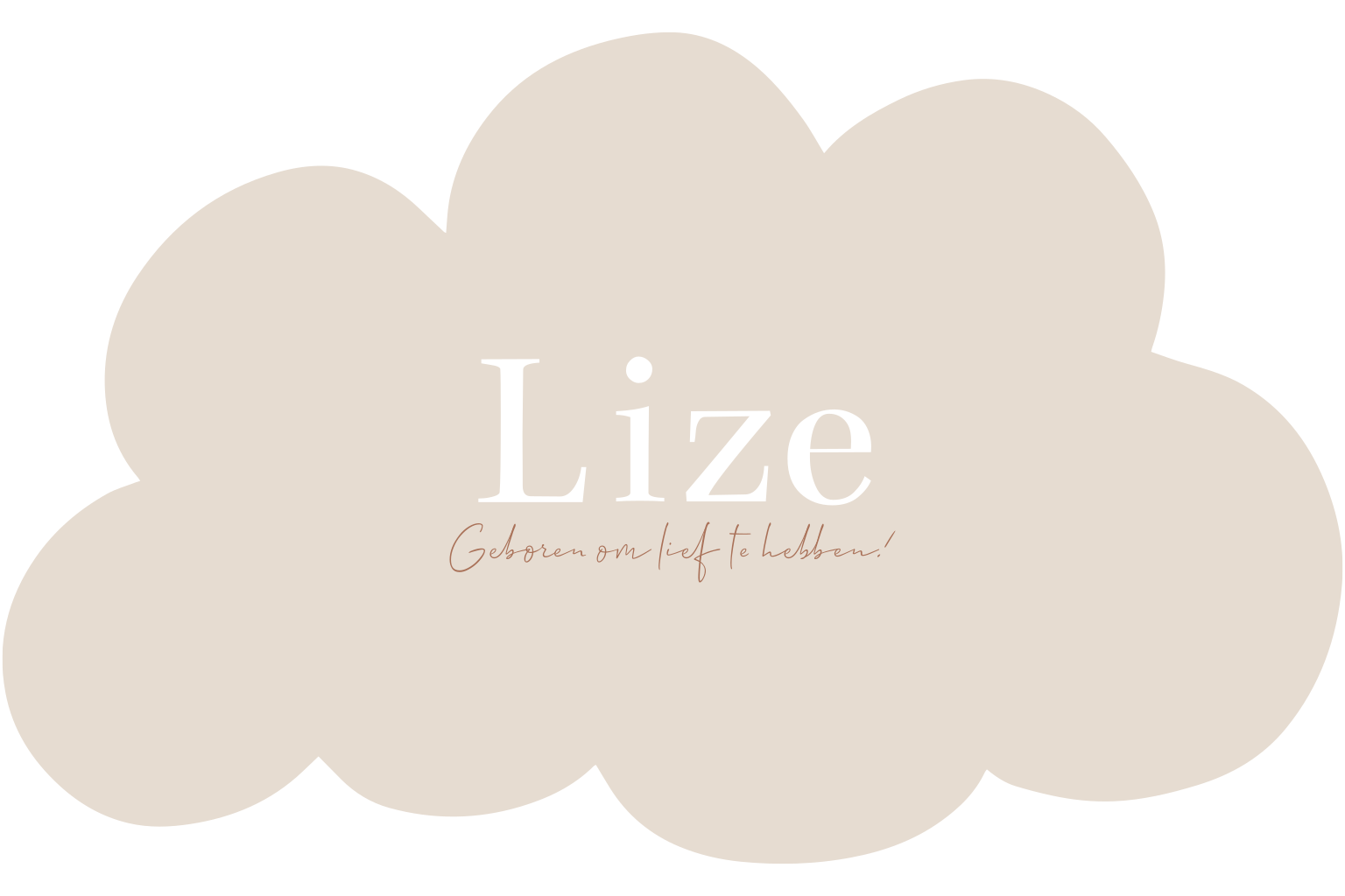 Een lief geboortekaartje in de vorm van een wolk voor een meisje in beige en oranje rode kleuren.