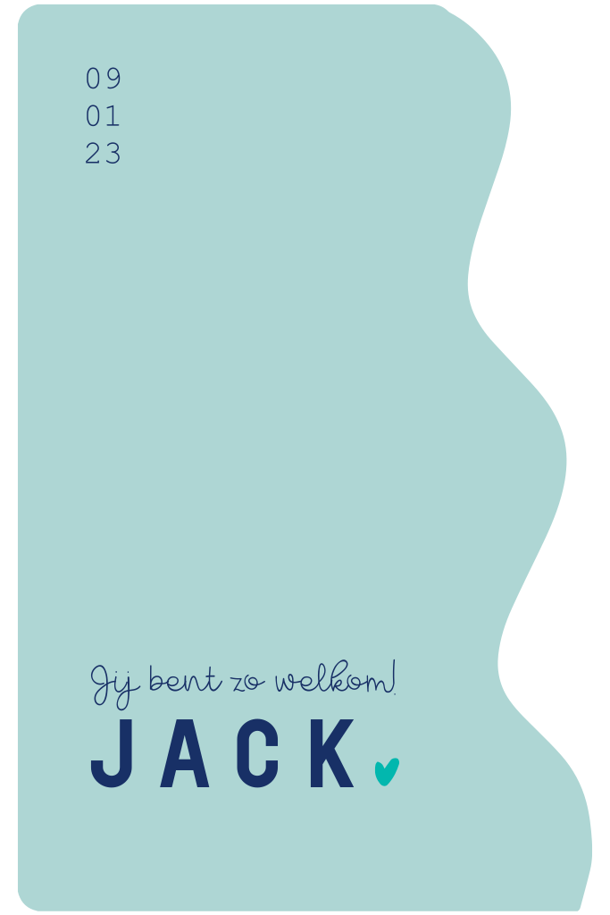 Een stoer geboortekaartje voor een jongen met een bijzondere vorm en knallende kleuren blauw en groen die je aan kunt passen naar wens.