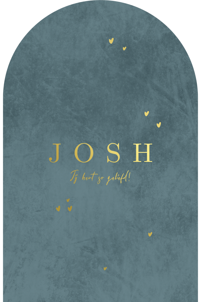 Een stoer geboortekaartje voor een jongen in boogvorm en blauw groene velvet look.