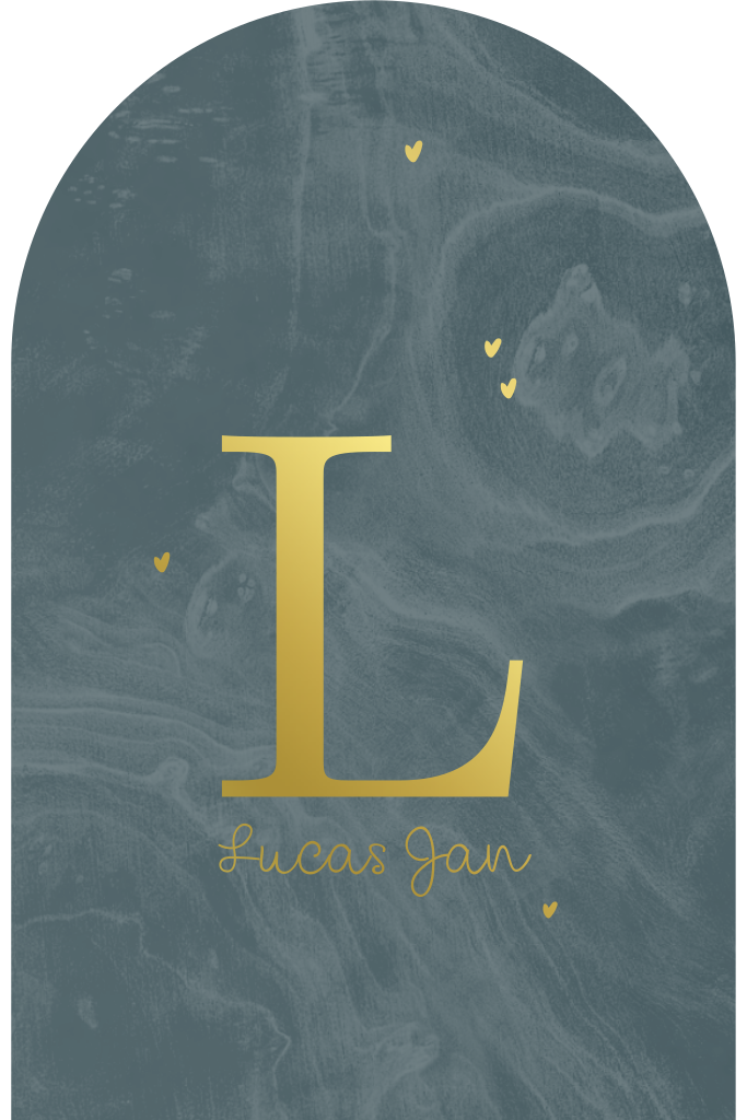geboortekaartje jongen marmer letter goudfolie boog donker groen
