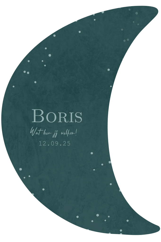 Geboortekaartje maan vorm stans groen blauw velvetlook