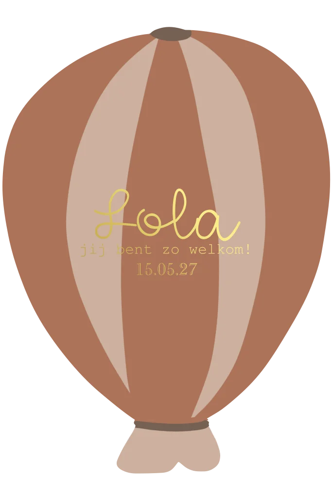 Geboortekaartje meisje ballon vorm rood bruin roze en goudfolie