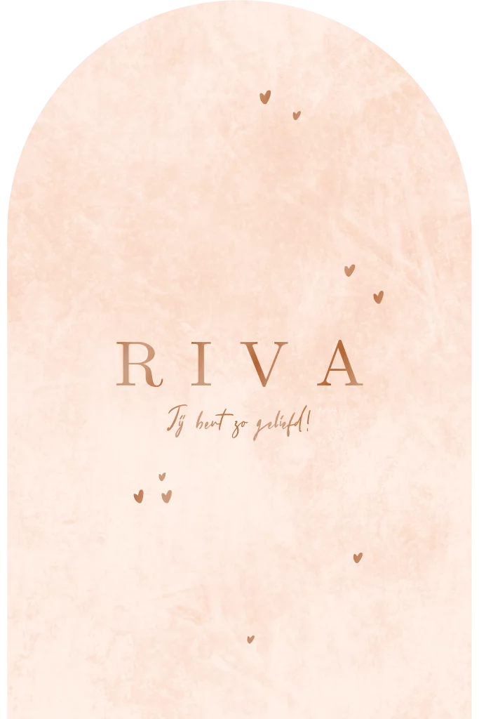 Geboortekaartje meisje boogvorm met koperfolie roze velvet achtergrond