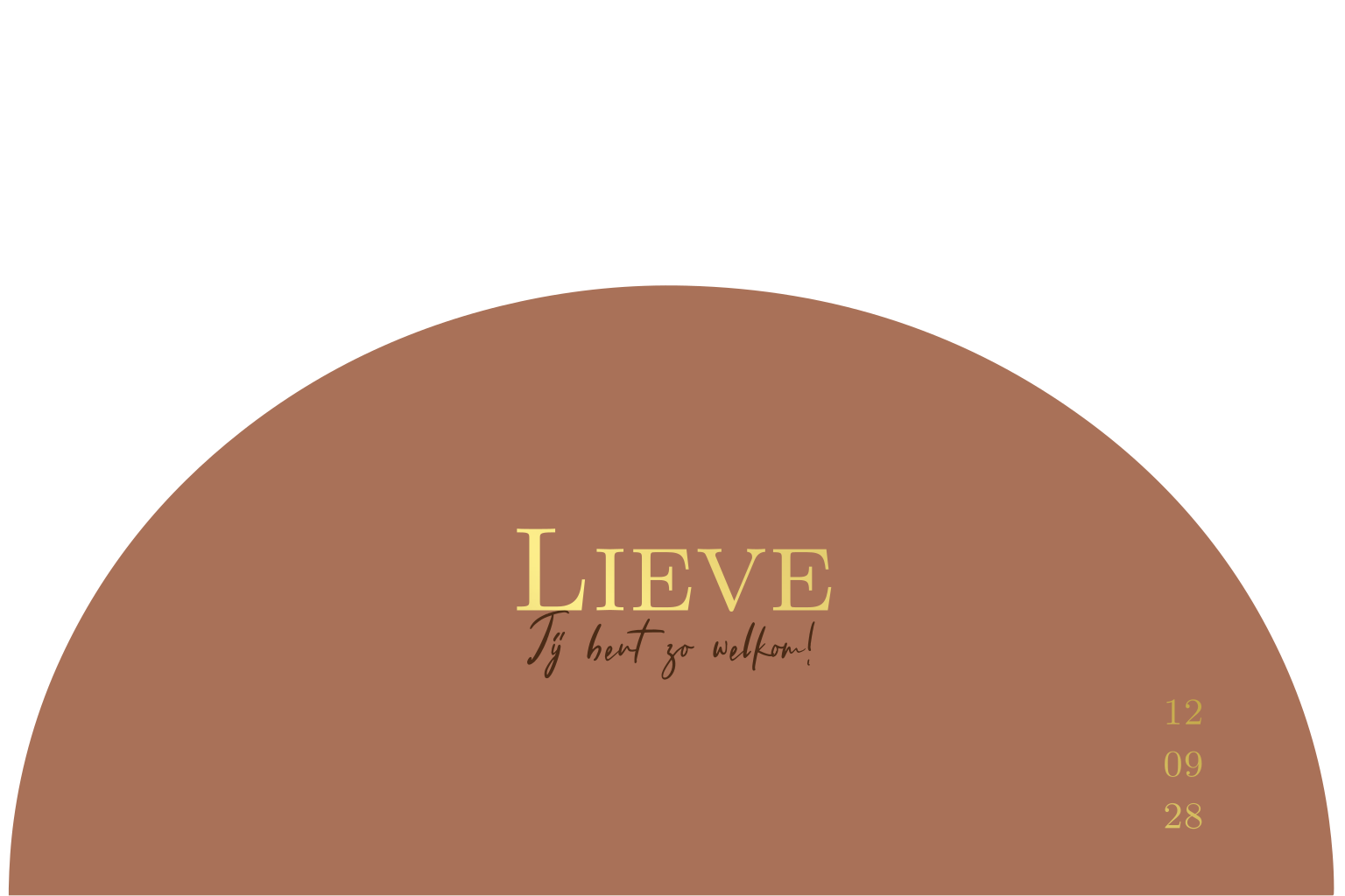Geboortekaartje meisje half rondje vorm roest oranje goudfolie