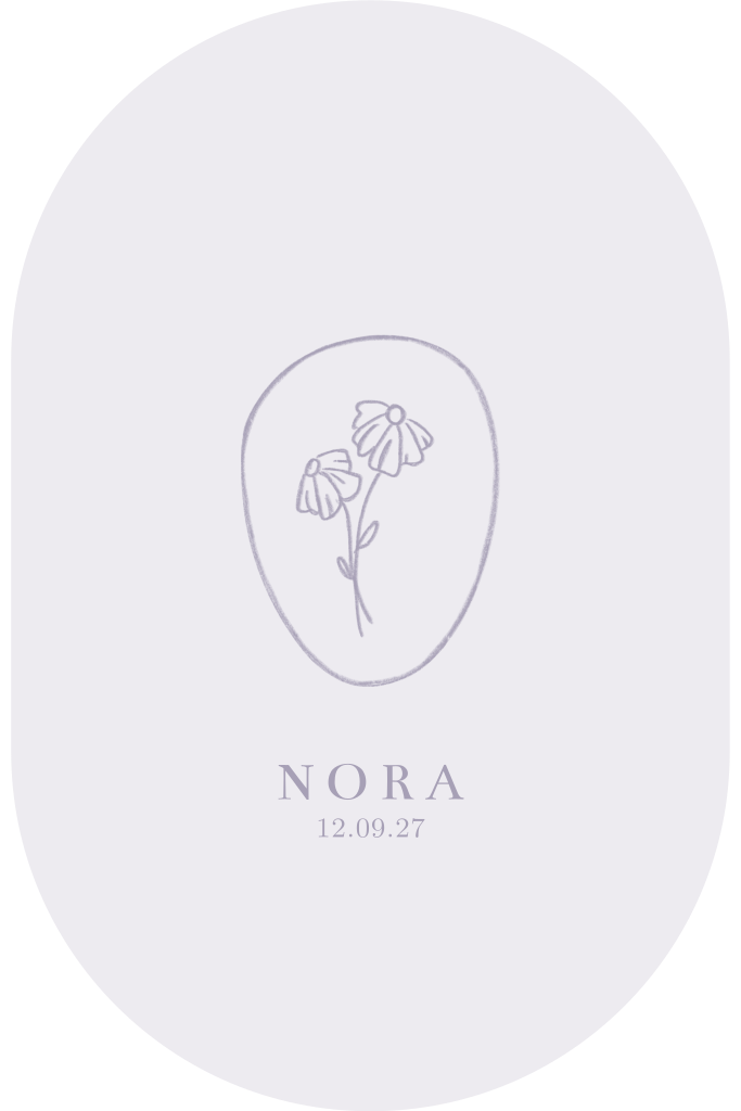 Dit lieve ovalen geboortekaartje voor een meisje met lila paarse kleuren kun je zelf aanpassen naar wens.