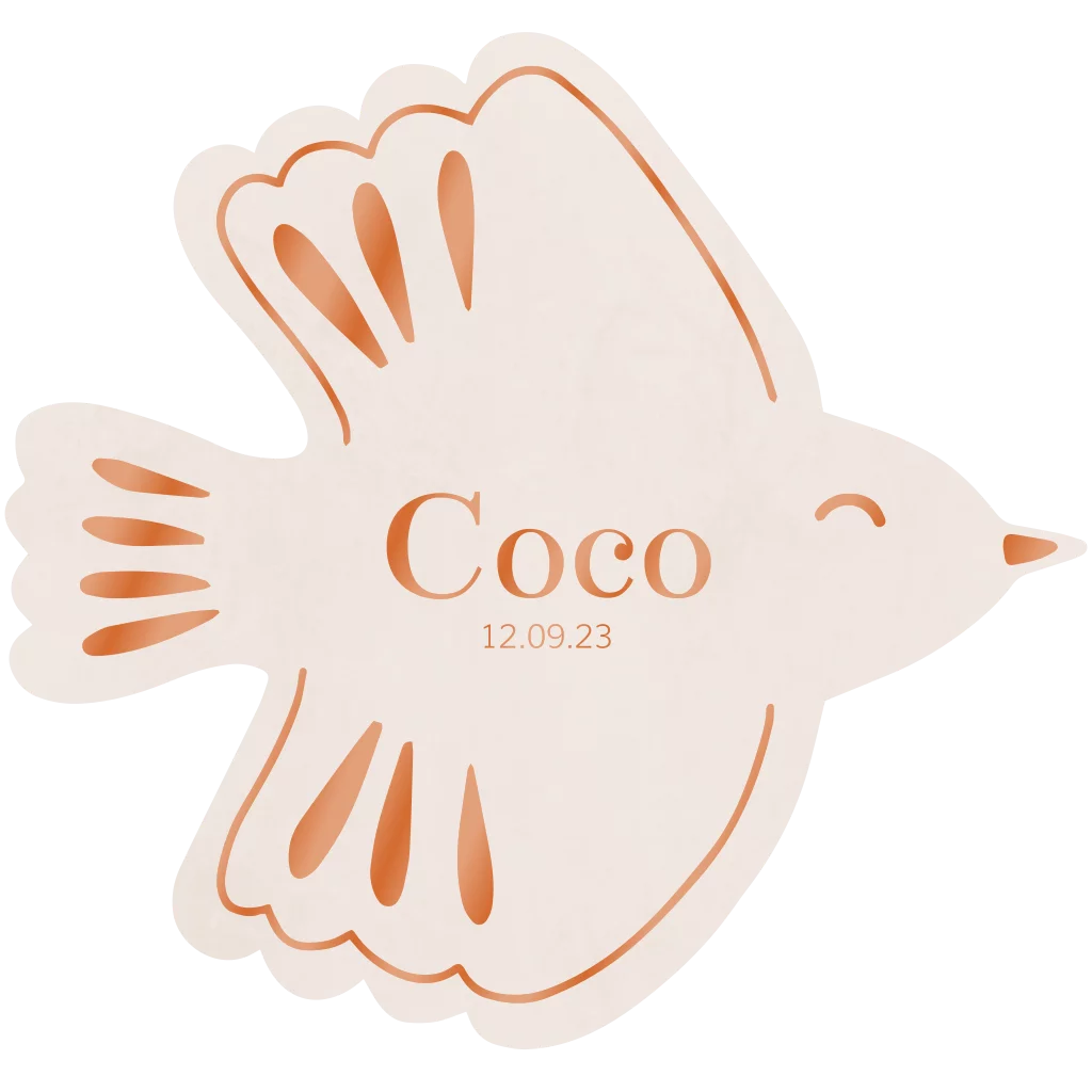 Geboortekaartje meisje vorm vogel roze en koperfolie velvet