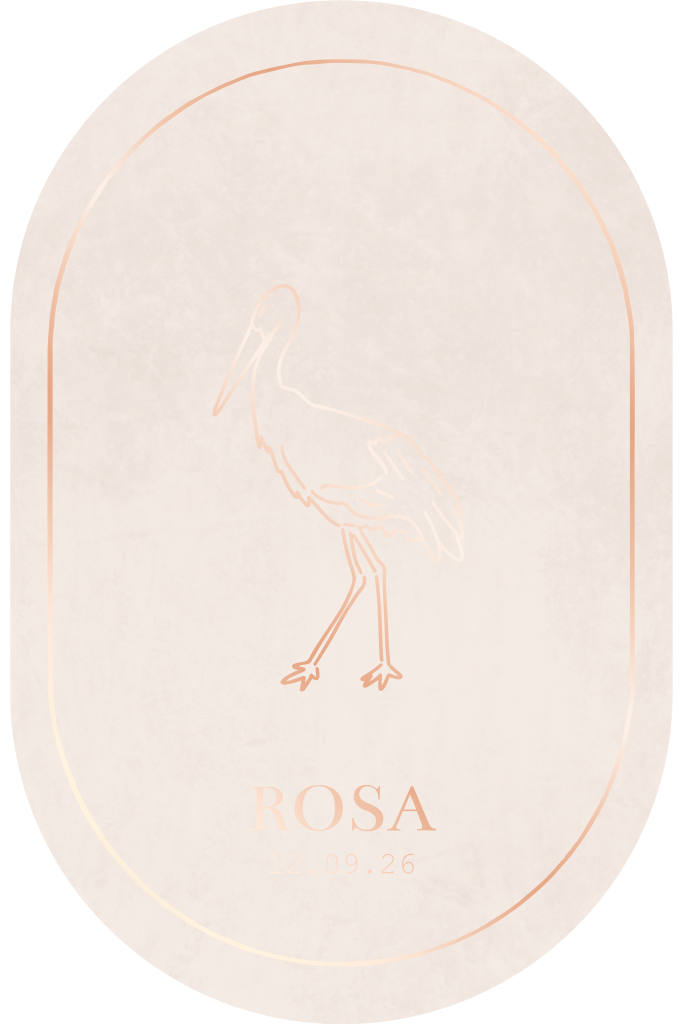 Geboortekaartje stans ovaal met ooievaar in roze en rosefolie