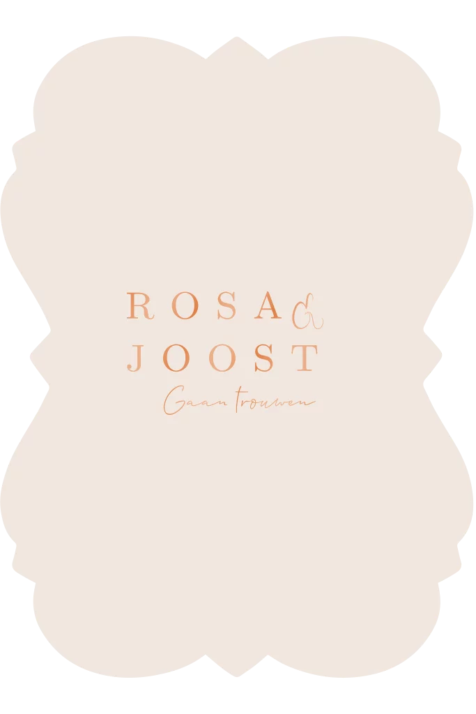 Klassieke trouwkaart in bijzondere vorm met roze en koperfolie