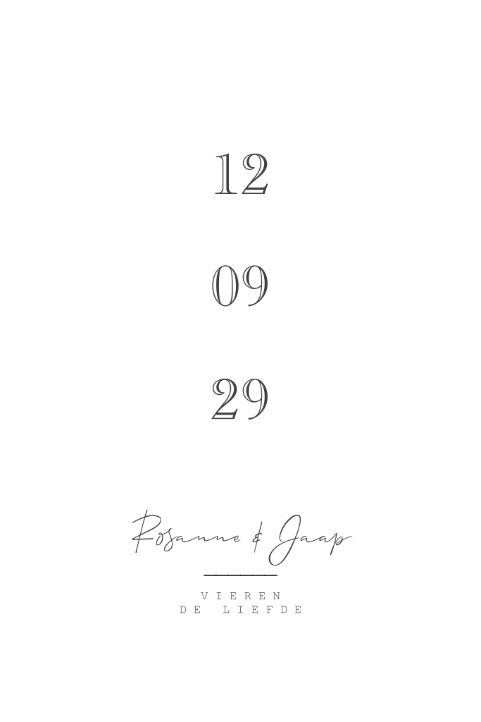 Deze ovalen trouwkaart met de datum groot op de voorkant van de kaart in minimalistische stijl kun je zelf aanpassen naar wens en smaak.