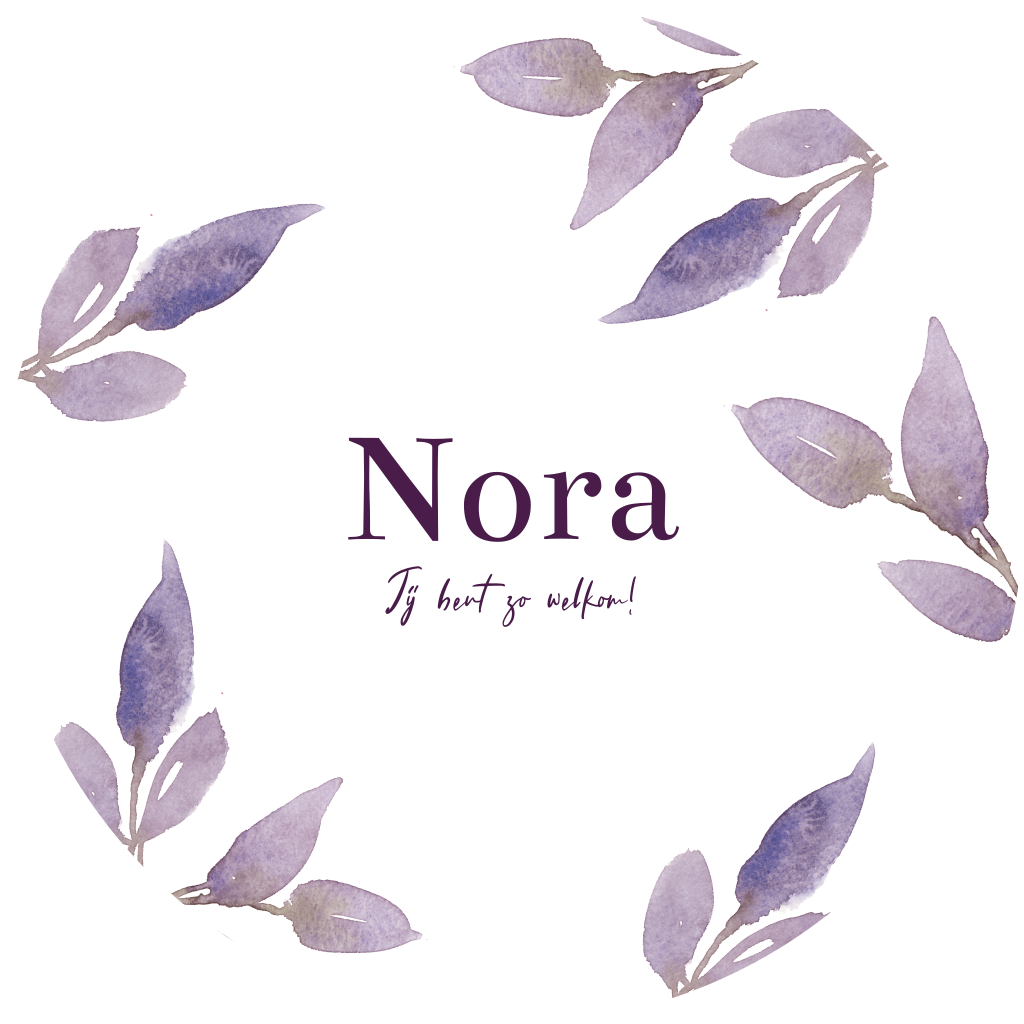 Een lief rond geboortekaartje voor een meisje met paarse watercolour takjes. Dit kaartje kun je zelf helemaal aanpassen naar wens.