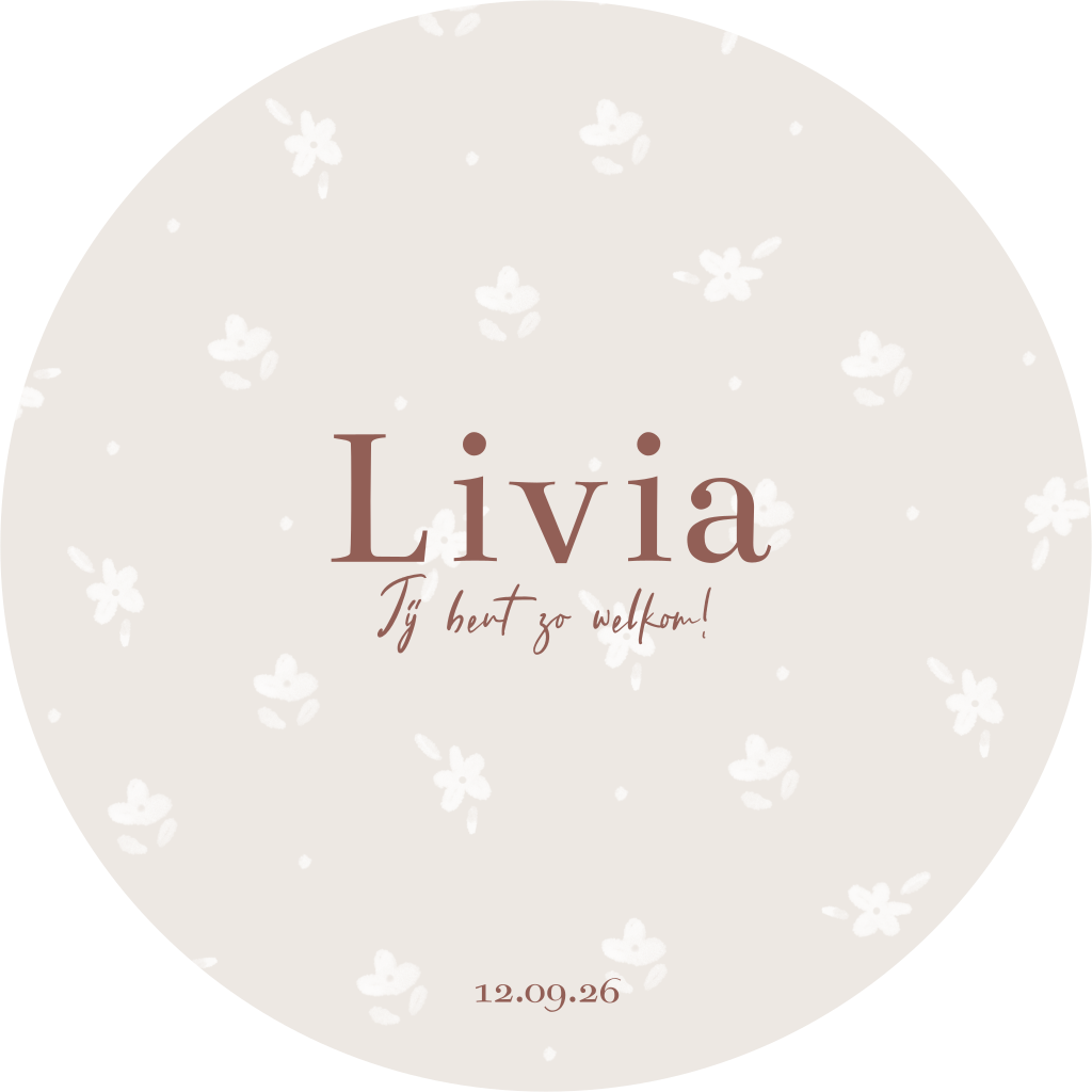 Dit lieve ronde geboortekaartje voor een meisje met witte en roze bloemenprint kun je zelf aanpassen naar wens en smaak.
