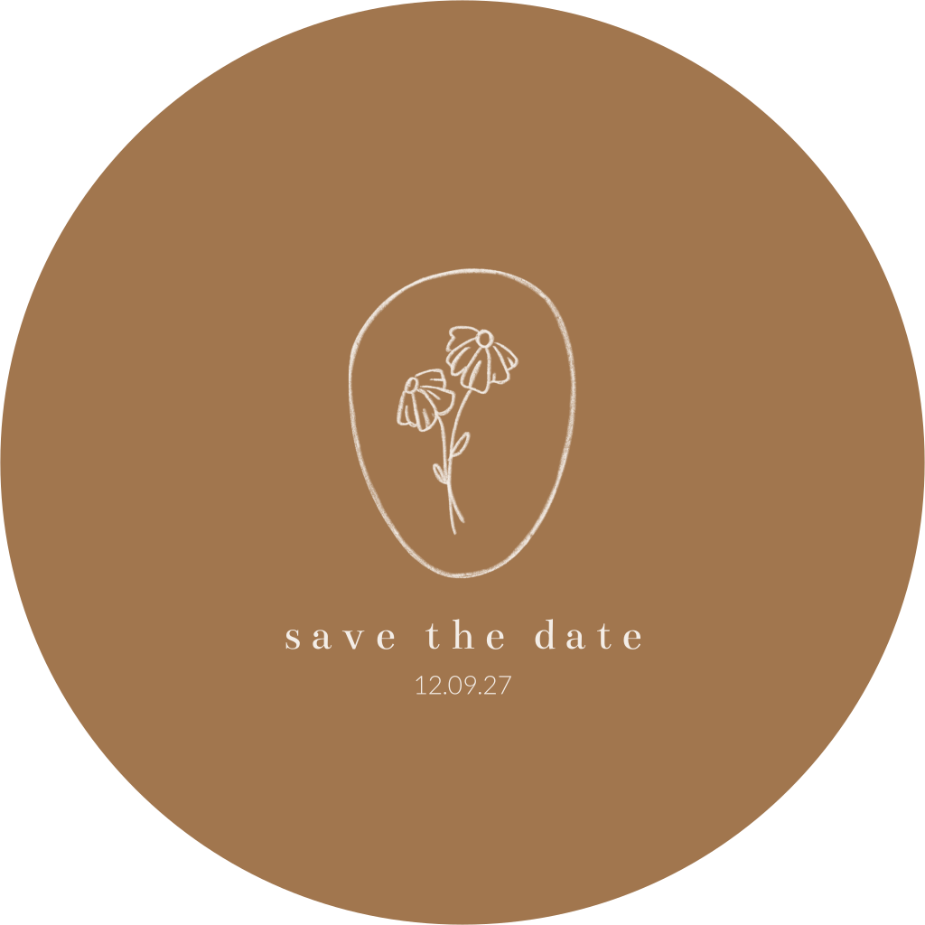 Ronde save the date kaart lijntekening bloemen madeliefjes bruin