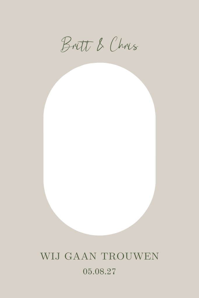 Trouwkaart beige met ovalen stansvorm